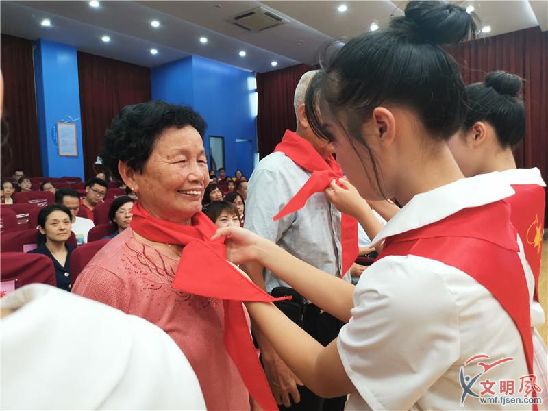 現場,華師附小的少先隊員還為三位光榮在黨50年的老黨員敬獻紅領巾。1966年入黨的青礁村老黨員顏秀卿心情非常激動,“以前的青礁村很窮,村民只有微薄的工分收入,現在村里有蘆塘書院、幸福食堂,老人還能領社保,從青礁村就可以看出我們的祖國在中國共產黨的正確領導下,不斷發展富強。”老黨員顏秀卿還寄語在場的少先隊員們,要聽黨話、跟黨走,好好學習,牢記革命前輩的優良傳統,學習雷鋒好榜樣把有限的生命投入到無限的為人民服務當中。