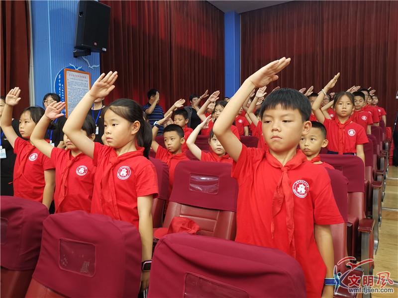 東南網7月7日訊(記者 盧超穎 李奇)6日下午,廈門市海滄區“童心向黨?我向黨旗敬個禮”主題隊會暨“一片童心向黨”動漫宣傳片發布會在華中師范大學海滄附屬小學博雅講堂舉行。