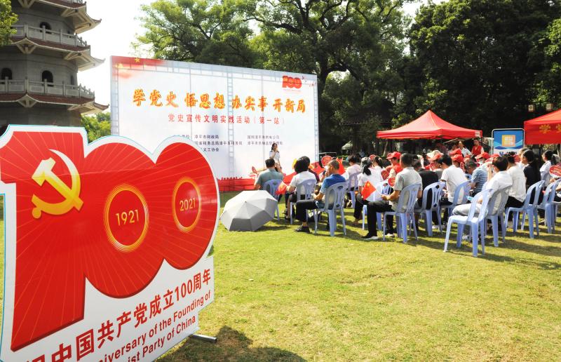 文明風(fēng)7月19日訊 火紅的七月,黨旗迎風(fēng)飄揚(yáng),豐富多彩的新時(shí)代文明實(shí)踐活動(dòng)如約而至。為推動(dòng)新時(shí)代文明實(shí)踐活動(dòng)與黨史學(xué)習(xí)教育緊密結(jié)合、互通互融,大力唱響新時(shí)代文明實(shí)踐主旋律,7月14-15日,漳平市稅務(wù)局、漳平市財(cái)政局聯(lián)合國(guó)網(wǎng)漳平市供電公司、漳平市市場(chǎng)監(jiān)督管理局共同開展“學(xué)黨史 悟思想 辦實(shí)事 開新局”黨史宣傳文明實(shí)踐活動(dòng)。此次活動(dòng)以巡回宣講的形式分別在漳平市櫸子洲公園新時(shí)代文明實(shí)踐點(diǎn)、溪南鎮(zhèn)東湖村文明實(shí)踐站、蘆芝鎮(zhèn)圓潭村文明實(shí)踐站開展。