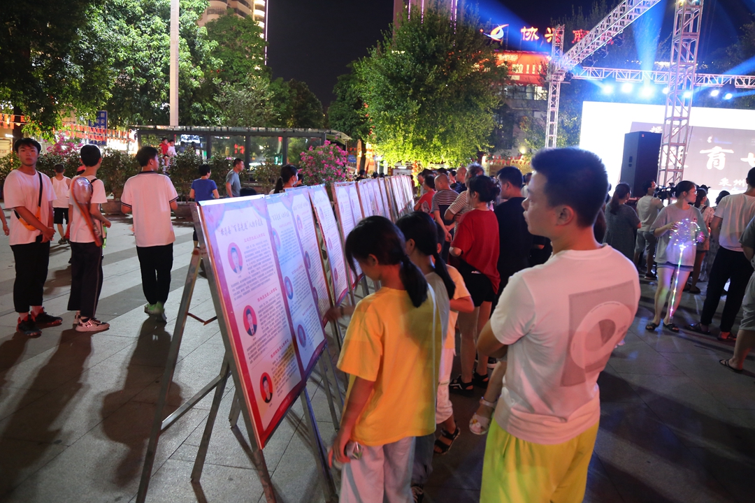 演出現場設置了道德模范先進事跡展板,吸引了不少人。 安溪縣委文明辦供圖