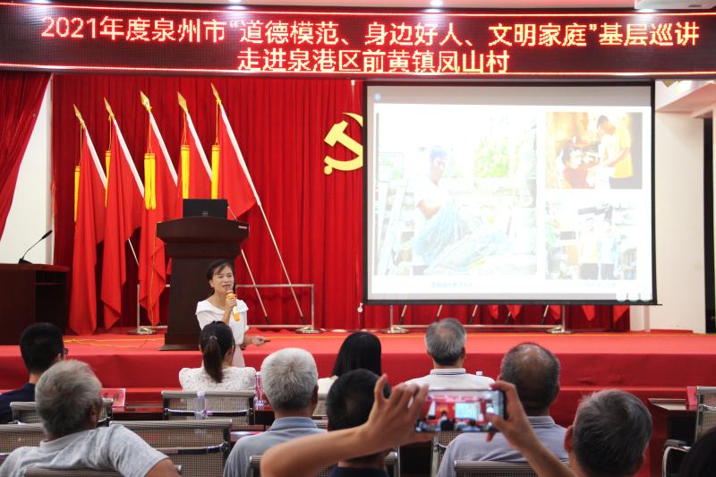 崇德向善,見賢思齊。道德模范、身邊好人、文明家庭是社會推崇、群眾愛戴的身邊榜樣。本次活動由泉州市委文明辦主辦,泉港區委文明辦、泉港區前黃鎮承辦。通過此次道德模范、身邊好人、文明家庭基層巡講活動的開展,學習宣傳道德模范的先進事跡,培養擔當民族復興大任的時代新人,弘揚共筑美好生活夢想的時代新風,為奮進新時代、共筑中國夢提供強大精神力量和道德支撐。(泉州市泉港區委文明辦供稿)