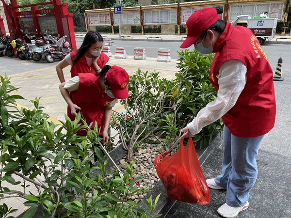 志愿者們積極拾撿東海大街、親子廣場兩側(cè)路段的煙頭、垃圾。林婕 攝