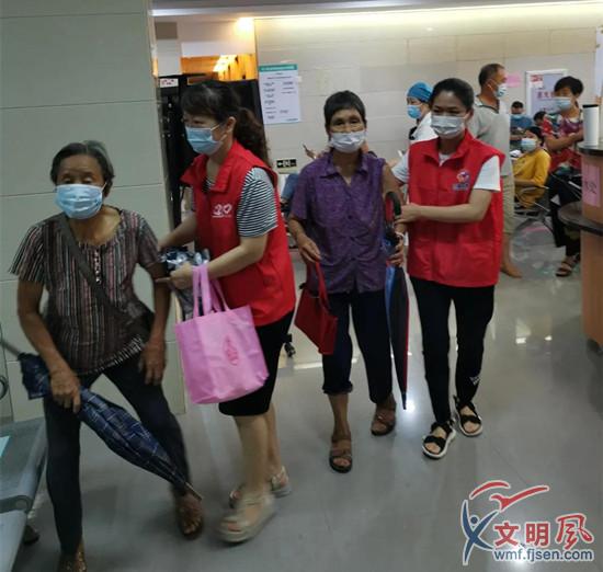8月6日,翔安區婦聯組織機關巾幗志愿者協助結對共建的小嶝社區居民到蓮花醫院開展疫苗接種工作,并宣傳疫情防護知識。在接種點,志愿者們引導居民,攙扶老人慢行,組織行動不便的居民優先接種。
