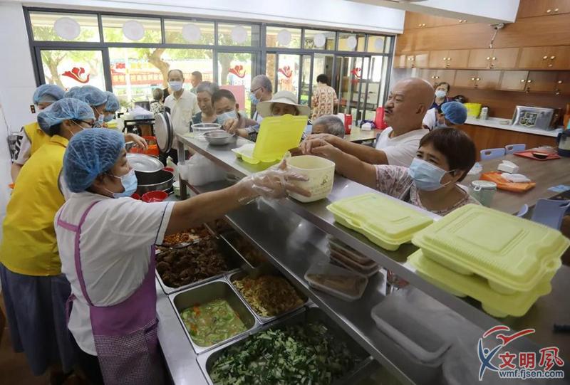 文明風(fēng)9月6日訊(陳穎嫻 林泓 楊慶山 黃建軍)臨近中午,湖里區(qū)江頭街道呂嶺社區(qū)的敬老餐廳總是一片忙碌的景象,來(lái)往的是提著打包盒前來(lái)買飯就餐的老人,還有圍繞著餐廳為老人提供飯菜保障的志愿者們。