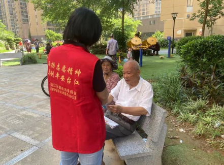 志愿者向老人進行疫苗接種宣傳(臺江區(qū)委文明辦供圖)