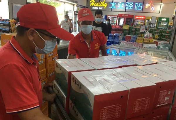 惠東公益志愿者為一線疫情防控人員送去愛心物資。惠安文明辦 供圖