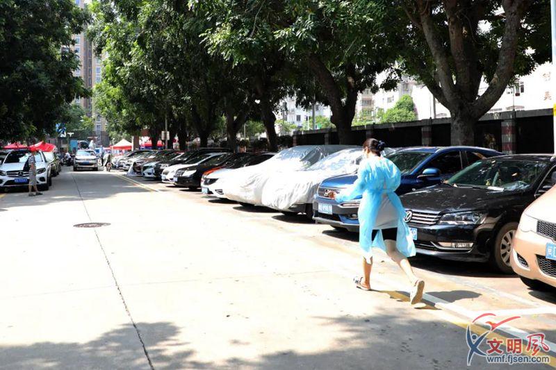 “請保持一米距離,佩戴好口罩,出示健康碼……”江頭街道呂厝社區的徐滿萍堅守在小區,向廣大居民宣傳疫情防控相關信息,動員小區居民積極參加全員核酸,引導居民提前做好手機信息登記采集等。