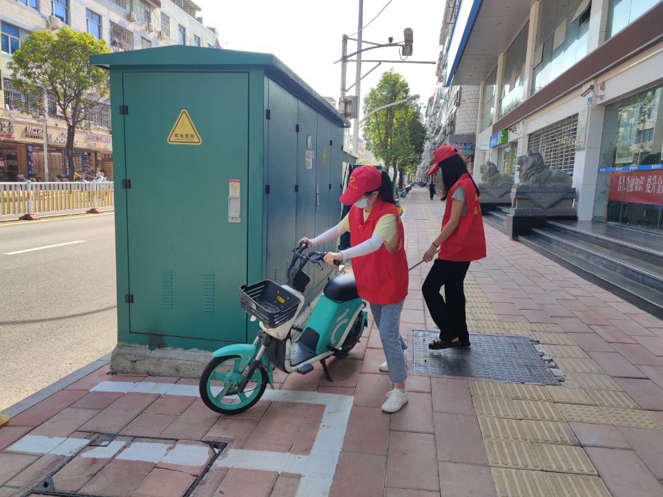 閩侯縣工商聯(lián)志愿者對共享單車進行有序擺放 閩侯文明辦供圖