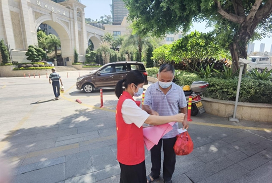 志愿者分發倡議書 鳳城鎮供圖