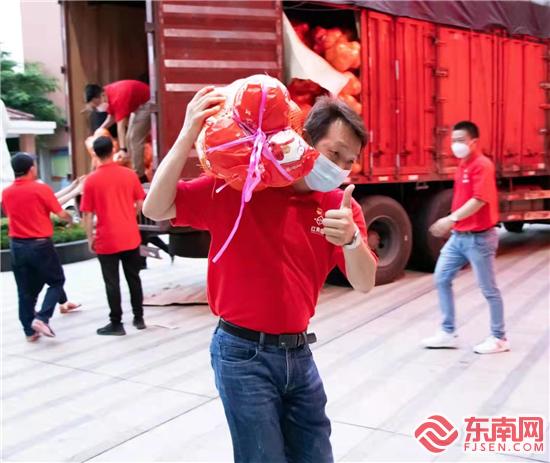 在堅守崗位的同時,他還了解到前進村有部分特殊兒童,擔心疫情期間他們的防護物資不足,以個人的名義緊急從網上采購了600個口罩、60瓶洗手液、60瓶酒精送往前進村三社聯動的社工手中。作為集美區青商會員之一,他于9月23日在廈門工商聯(總商會)的統一指導下,與其他青庭黨建聯盟向部分抗疫一線的工作者捐贈18噸平和蜜柚。