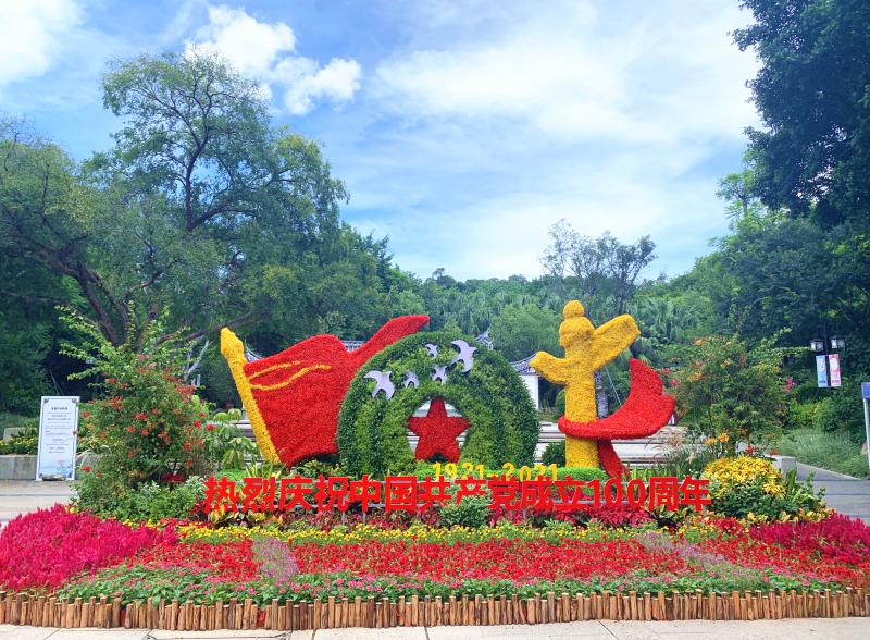福州屏山公園門口處大型建黨百年花壇景觀小品(鼓樓區委文明辦供圖)