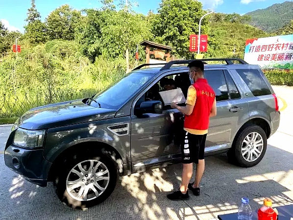 志愿者檢查進出人員”健康碼“ 永泰文明辦供圖