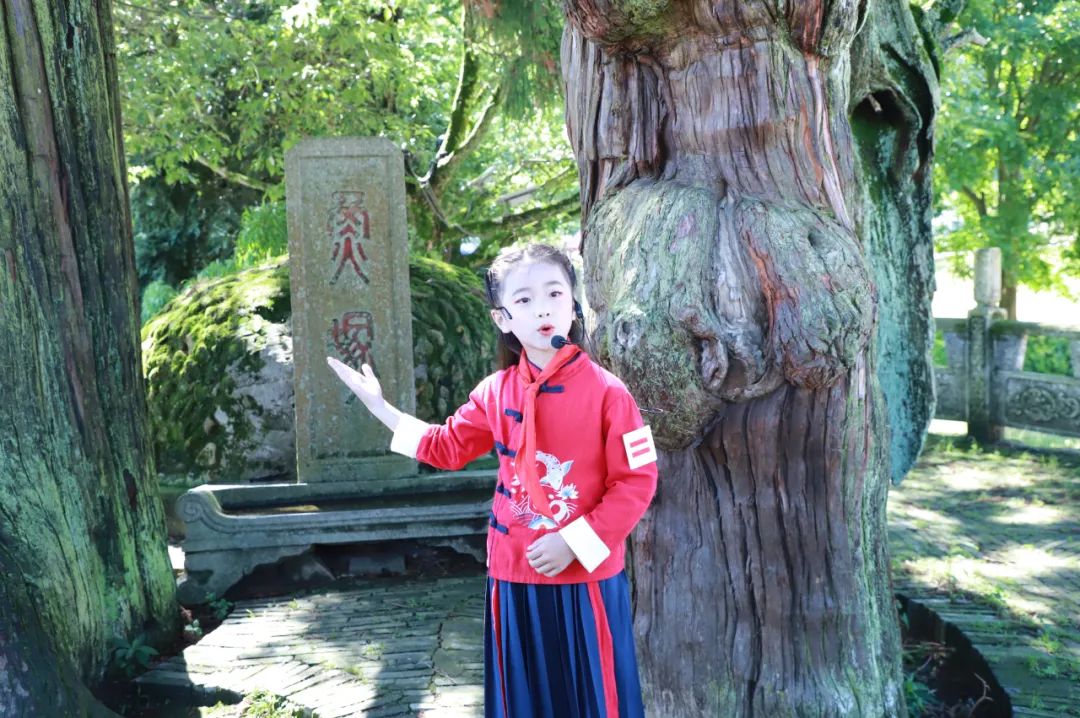 紅領巾導游隊小導游講解魚冢的來歷。周寧縣融媒體中心供圖