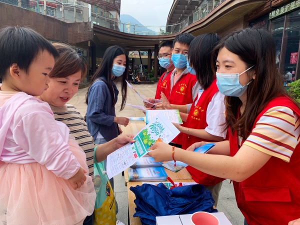 志愿者們在寶信城市廣場向來往居民發放創城知識宣傳折頁、垃圾分類宣傳單,詳細講解垃圾分類知識,倡導大家從日常生活入手,從小事做起,爭當垃圾分類的倡導者、參與者,以實際行動共創美好家園。