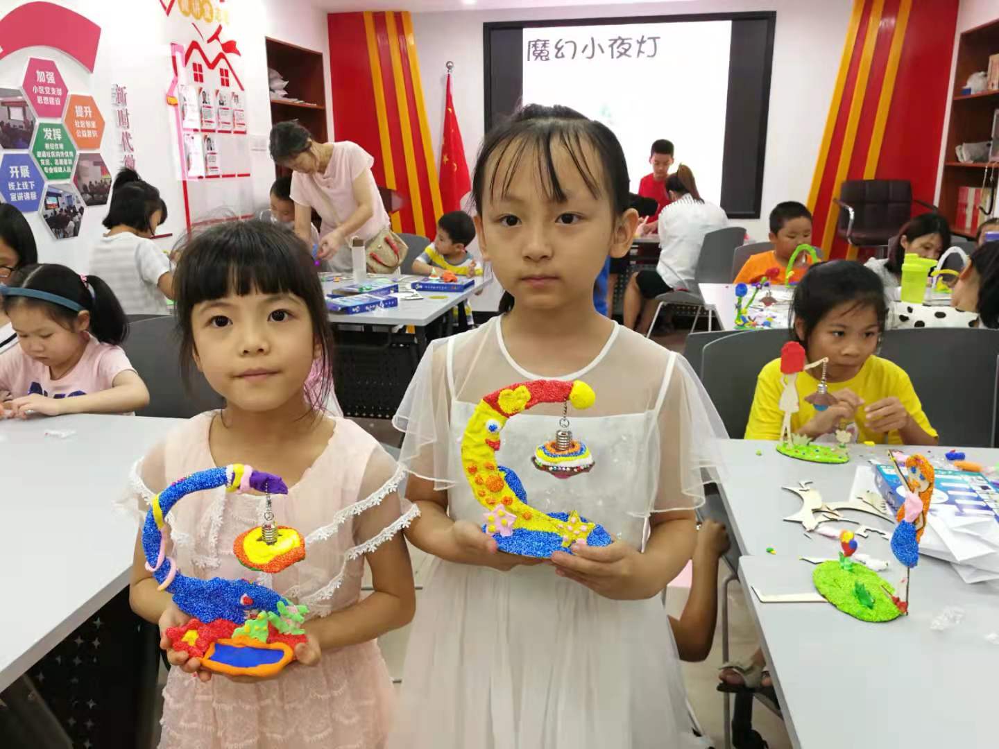 孩子們展示手工作品(長(zhǎng)樂(lè)區(qū)吳航街道供圖)