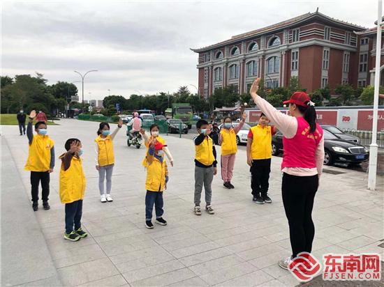 學習交通規則、手勢,更好地踐行文明交通。“右手折疊是直行,左手抬高是停止……”志愿者向小義工講解了基本的交通規則,教授交通引導手勢口訣。