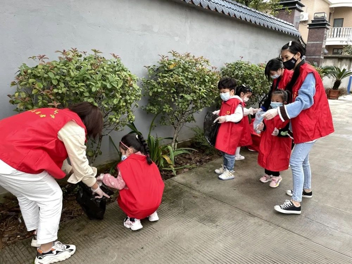 南通中心幼兒園志愿者參與清潔服務(wù)。閩侯縣委文明辦 供圖