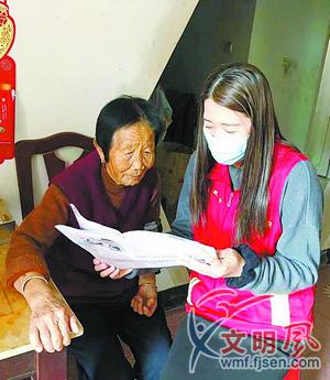 志愿者陪伴老人讀報。(資料圖/同安區(qū)東山民俗文化志愿者協(xié)會提供)