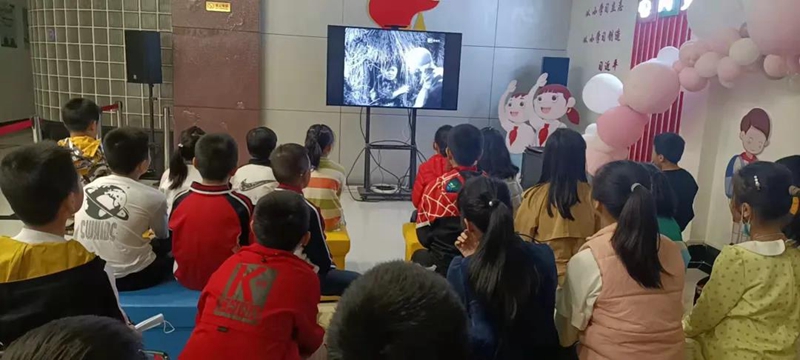 本期觀影活動為隊員們挑選了愛國影片《小伙伴》,影片講述八路軍的通信員小王,每次都把文件送到交通站小榮的媽媽家中,這樣他與小榮成了好朋友;不久后媽媽被漢奸捉去,小榮參加了八路軍,擔當起母親送文件的任務;抗戰(zhàn)快要勝利時,部隊把小王、小榮送去學習,準備為革命擔負起更重大的任務的故事。隊員們聚精會神地觀看,影片深深激發(fā)了少先隊員們的使命感、光榮感和愛黨愛國情懷。