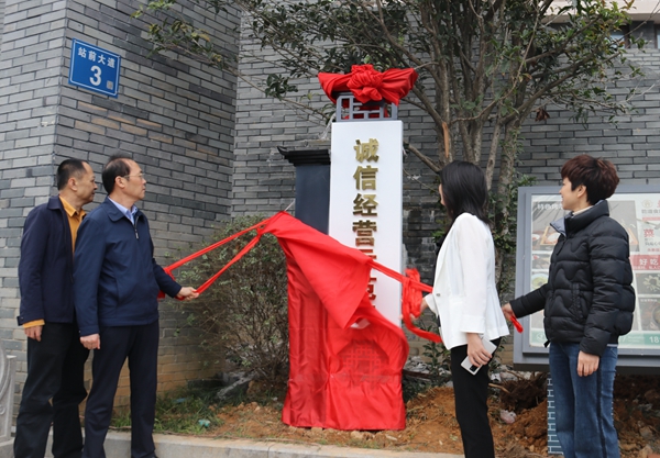 縣委常委、宣傳部部長鄭曉紅與主辦方單位共同為永泰縣美食街“誠信示范街”揭牌。永泰縣委文明辦供圖