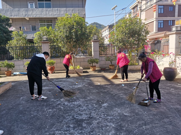 閩侯縣婦聯組織志愿者對庭院進行清掃。閩侯縣委文明辦供圖