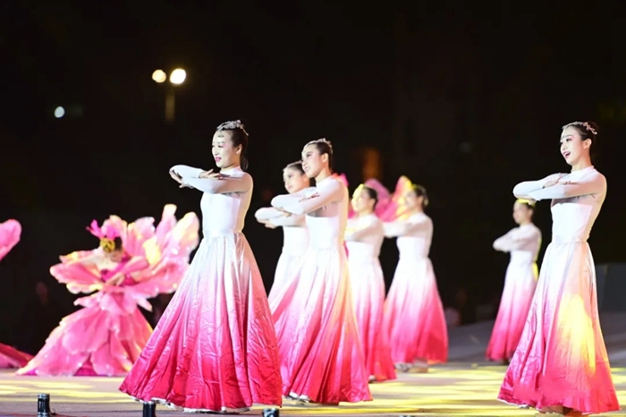 榜樣的力量將晚會推向了第一個高潮。隨后,樂隊表演、音樂快閃、語言小品等特色節目輪番登場。樂隊表演唱《相信自己》《怒放的生命》、音樂快閃《共筑文明》唱出了福鼎人民團結拼搏,投身創城的決心與豪情;小品《徐霞客夢游太姥》,以時空對話的創新形式,用活潑輕松的基調,展現太姥之美,倡導文明旅游;舞蹈《再唱山歌給黨聽》、獨唱《新的天地》,用磅礴的歌舞,“全景式”展現了福鼎人民積極向上的精神風貌和愛黨愛國的赤子深情。