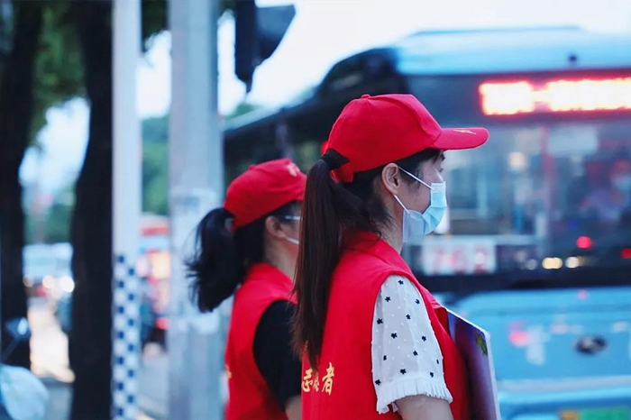 文明志愿者在街頭進(jìn)行交通勸導(dǎo),吳梓航 攝