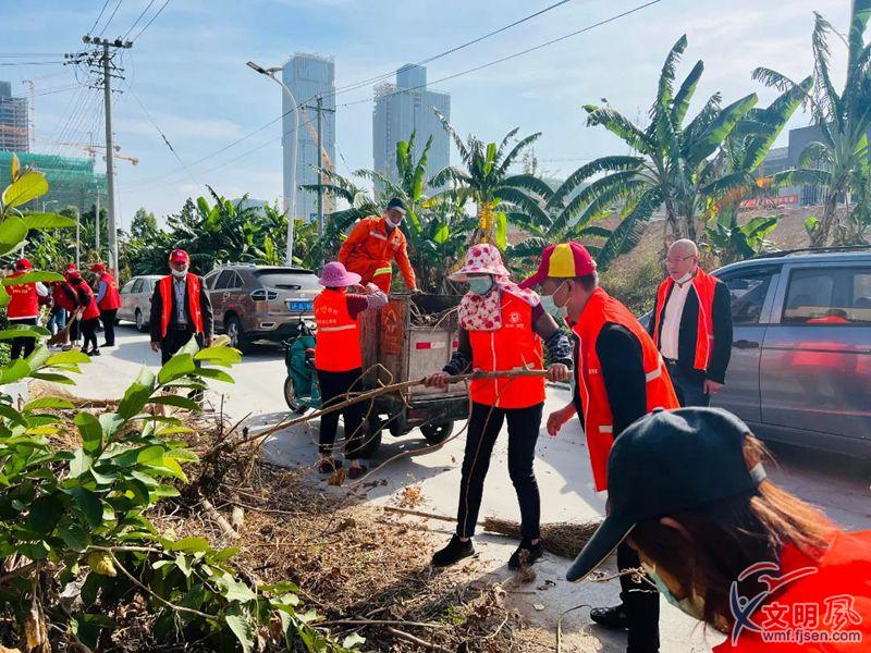 志愿者開展衛(wèi)生死角清理。(同安區(qū)委文明辦供圖)