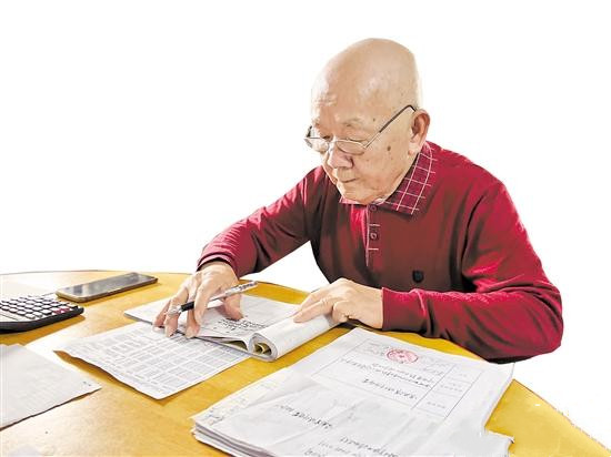 走進黃挹芳家里,只見入門處的圓桌上整齊擺放著一沓沓材料,窗戶下的書桌擺滿了榮譽證書,墻壁上掛著琵琶、洞簫、二胡等各種樂器。與記者見面時,他正忙著比對上個月的收支明細,為了不出差錯,他反復確認了好幾遍才安心。