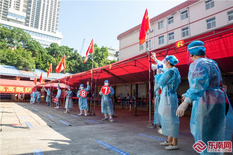 場(chǎng)地,就是擺在他們面前的首個(gè)難題。“我們預(yù)估檢測(cè)人數(shù)會(huì)達(dá)到每輪次16000人次,那就必須要有14臺(tái)機(jī)器才能輪轉(zhuǎn)得開(kāi),所以找好場(chǎng)地很重要”,張惠霞說(shuō),廈禾社區(qū)是老城區(qū)的繁華地帶,人口密度很大,但是高樓多,空地少。為了尋找合適的場(chǎng)地,社區(qū)工作人員頂著時(shí)下35℃的高溫,在轄區(qū)各處奔走。最終在多方力量的幫助下,將角濱汽修廠(chǎng)定為廈禾社區(qū)核酸采樣點(diǎn)。找到場(chǎng)地后,社區(qū)工作人員們又和思明環(huán)衛(wèi)保潔人員們一起,清理油污、消殺平整場(chǎng)地、接電續(xù)水,終于趕在天亮前,為首輪核酸檢測(cè)工作做好了周全準(zhǔn)備。
