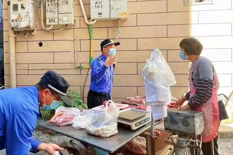 “阿婆,這個您放在路上的貨物,不僅占道,造成交通擁堵,還存在一定安全隱患。”日前,在同安區大同街道的一個店門口,正在進行日常市容市貌巡邏的同安區城管局執法隊員,發現了一處跨店經營現象,立即上前制止。執法隊員有的幫助店主將擺在店外的商品搬到店內,有的與店主、商販溝通,教育引導。
