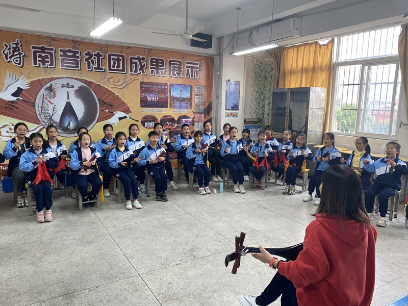 在城廂中心小學,剛走到南音社團活動室門口,記者就被婉轉悠揚的歌聲吸引住了,這是孩子們正在跟隨老師學習南音?;顒邮抑?,孩子們手拿不同種類的樂器,在老師的帶領下,相互配合,演繹出一首又一首的經典南音曲目。據了解,城廂中心小學的孩子們曾在全縣學校少年宮優秀項目展演中多次奪魁。