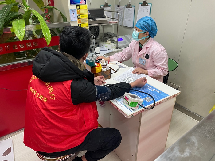 活動現(xiàn)場,志愿者們免費為社區(qū)群眾測量血壓、測血糖、發(fā)放健康教育宣傳材料,進行新冠肺炎疫情防控知識、應急知識、移風易俗、法律法規(guī)、預防未成年人沉迷網(wǎng)絡等知識宣傳。隨后,志愿者向社區(qū)群眾宣講黨的十九屆六中全會精神,推動全會精神深入基層,進一步激發(fā)社區(qū)人員愛黨、愛國、愛家鄉(xiāng)的熱情,堅定共產(chǎn)主義理想信念。
