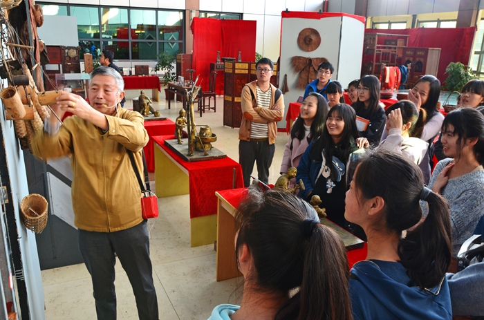 全國文明家庭——張書巖(左一)家庭用實(shí)物為觀眾呈現(xiàn)好家風(fēng)的豐富內(nèi)涵。屏南縣委文明辦供圖