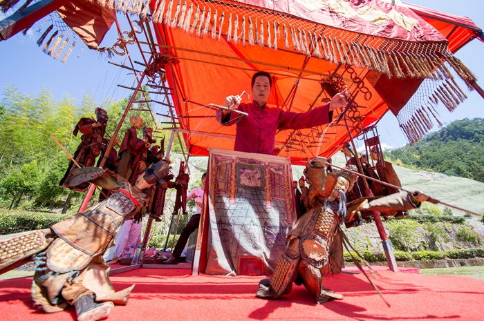 屏南縣民間藝人表演提線木偶戲。屏南縣委文明辦供圖