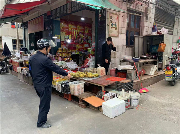 “大爺,馬路不允許占道擺攤!”為了減少路面“障礙”、清除路面垃圾等,網格員對沿街開展24小時全天候巡查,對發現的小商鋪“探頭”經營、隨地擺攤等問題,網格員聯合居委會及執法部門積極引導其正規經營。巡查過程中,網格員還化身“道路清潔員”,對路面垃圾進行清掃,對小廣告進行清除,提醒沿街店主進行垃圾分類,保持門前道路的整潔。