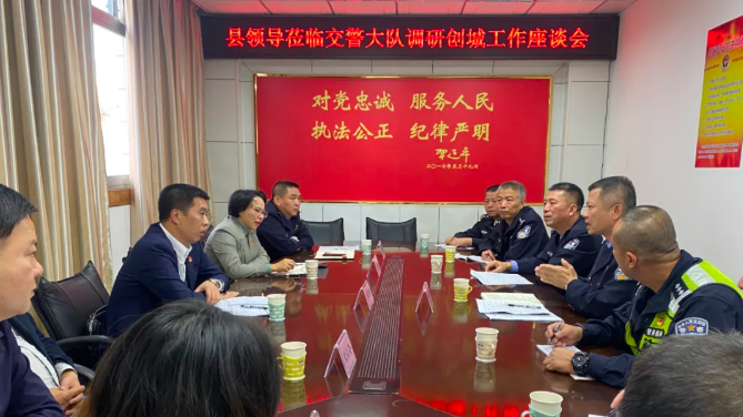調研中,縣領導要求,要統一思想認識,進一步增強創建全國文明城市的責任感和使命感,舉全警之力、集全警之智,為不斷推動城市全面提檔升級、社會全面進步貢獻公安力量。