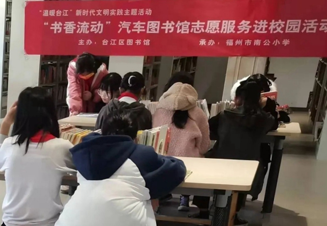 “書香流動”汽車圖書館進校園志愿服務活動(臺江區委文明辦供圖)