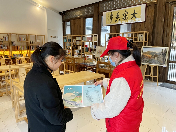 “大家知道哪些文明旅游規則嗎?”“不亂扔垃圾,維護環境衛生;不喧嘩吵鬧,遵守公共秩序......”活動現場,黨員志愿者們與游客進行問答互動,分發文明旅游宣傳單,幫助引導廣大游客提高文明旅游關注度,規范言行舉止,做好疫情防護,爭當文明旅游的實踐者、傳播者和推動者。此外,志愿者們還拿著垃圾夾,認真細致地清理雜物垃圾,美化古街環境。