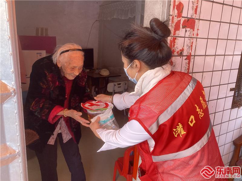 志愿者為轄區老人送上湯圓(李林村新時代文明實踐站供圖)