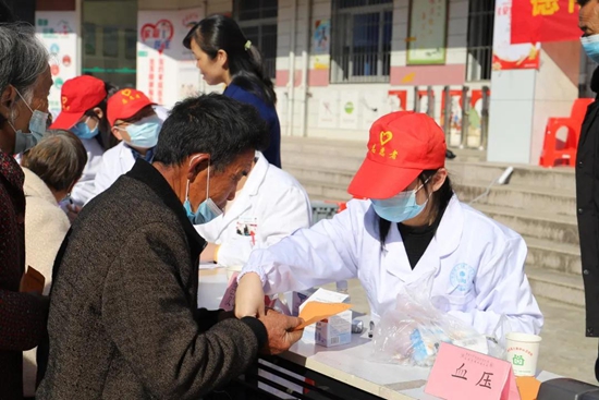 活動現場,縣醫院醫務人員一邊為群眾科普健康知識,免費測量血壓、血糖,一邊詳細詢問他們的身體狀況,答疑解難,并免費發放藥品,活動井然有序,現場滿是濃濃的溫情。