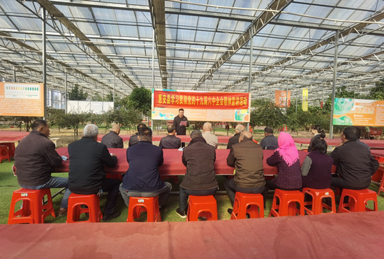 12月13日上午十點,正是村民耕作了半天中途休息的時刻。五柳村的黨支部書記盧劍龍“見縫插針”地利用好這點時間,在蔬菜大棚內(nèi)就地開起學(xué)習(xí)全會精神小課堂,宣講內(nèi)容由淺入深,點燃了現(xiàn)場熱情。