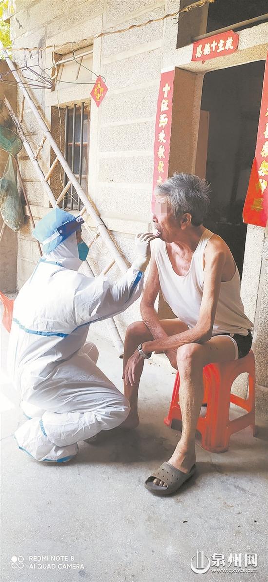 一院護士莊阿瓊回泉港老家抗疫,入戶為鄰居采集核酸。
