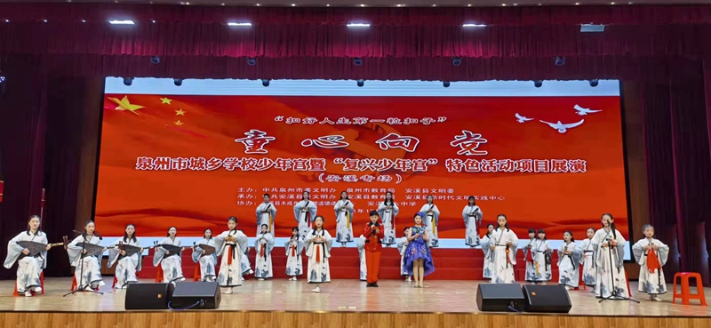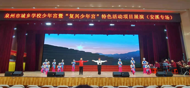 2021年12月30日,2021年泉州市城鄉學校少年宮暨“復興少年宮”特色活動項目展演活動(安溪專場)在安溪六中學術報告廳舉行。來自全縣的20所學校少年宮攜手同臺,傾情參演。