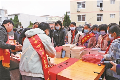 活動現(xiàn)場,在健康義診服務(wù)臺前,醫(yī)療工作人員利用模型為群眾進行示范教學(xué),讓大家能夠直觀了解和掌握一些基本的急救方法;新華書店攤位上的書籍涉及農(nóng)業(yè)生產(chǎn)方方面面,有講解農(nóng)作物病蟲害防治、畜禽疫病防治的,有宣傳農(nóng)業(yè)法律知識的,一時間成了“搶手貨”;春聯(lián)攤位前,滿滿祝福語通過筆墨傳遞,一個個大寫的“福”字在陽光下鋪滿場地……活動臨近結(jié)束時,許多老百姓依依不舍,拉著工作人員的手問什么時候再來。老百姓的滿意和微笑,讓工作人員心里甜絲絲的。他們說:“累并快樂著,在給別人送去溫暖的同時,自己也收獲了快樂。”