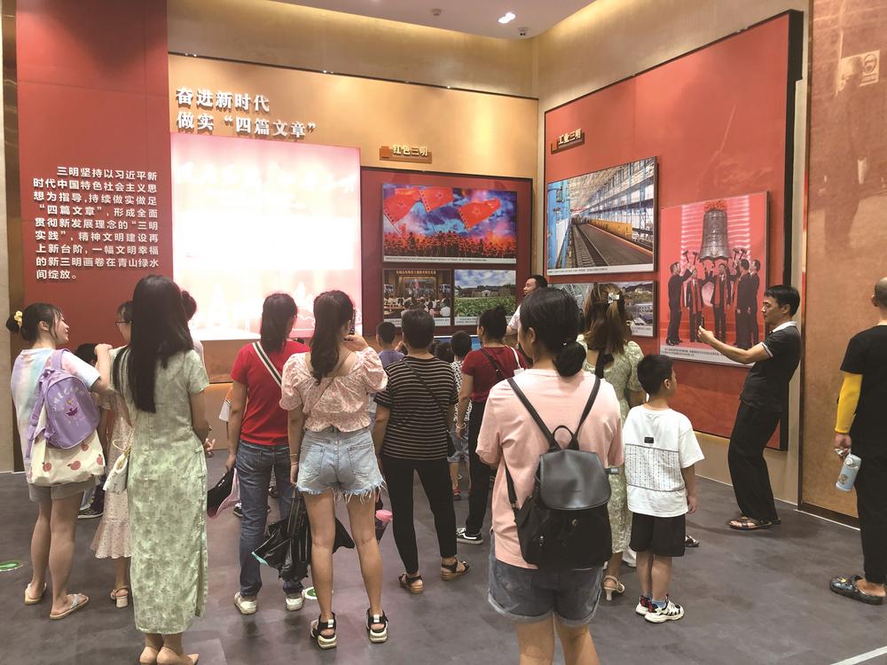 2021年7月6日,市民在參觀三明市精神文明建設(shè)展覽館。