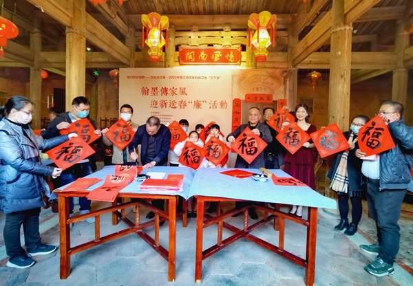 文明風(fēng)1月17日訊 虎年新春佳節(jié)來臨之際,1月15日,晉江市在新塘街道梧林傳統(tǒng)村落開展“翰墨傳家風(fēng) 迎新送春‘廉’”活動(dòng)和“鄉(xiāng)戀·家風(fēng)”——梧林傳統(tǒng)村落原創(chuàng)歌曲演唱會(huì),深化“一鎮(zhèn)一孝廉”創(chuàng)建活動(dòng),傳承優(yōu)秀傳統(tǒng)文化,弘揚(yáng)中華傳統(tǒng)美德,倡導(dǎo)優(yōu)良家風(fēng)家教,營(yíng)造祥和健康的春節(jié)節(jié)日氛圍。