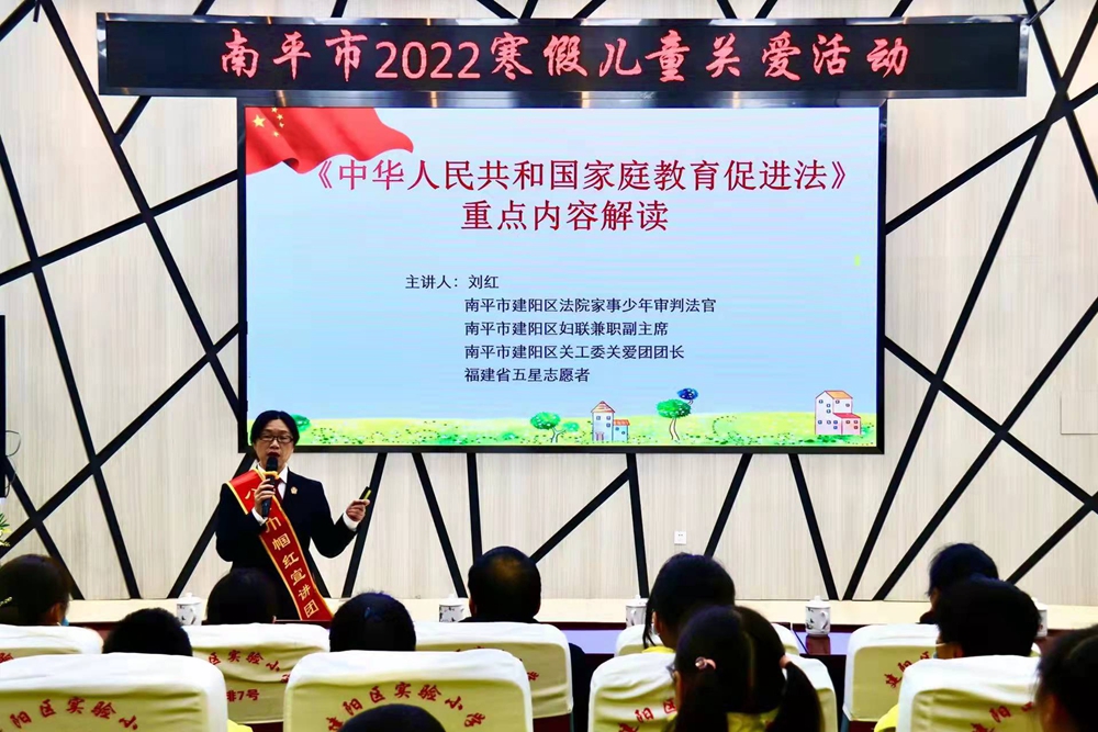 1月17日,南平市“把愛帶回家——送法到家 讓孩子健康成長”2022寒假兒童關愛服務活動在建陽區實驗小學舉行 范耀楚/攝