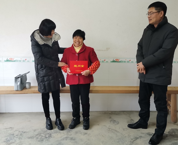 文明風1月18日訊(通訊員 宋春蘭)佳節(jié)尚文明,關懷暖人心。1月17日下午,省委文明辦慰問組到尤溪縣管前鎮(zhèn)看望慰問福建省道德模范蔣菊英,并送上道德模范慰問金和新年祝福。三明市委文明辦副主任江學富,尤溪縣政協(xié)副主席肖方杰,以及縣委文明辦、管前鎮(zhèn)等單位負責同志陪同慰問。