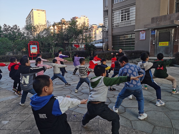 雙虹社區四點半學校,武術隊志愿者指導孩子們練習。寧化縣委文明辦供圖